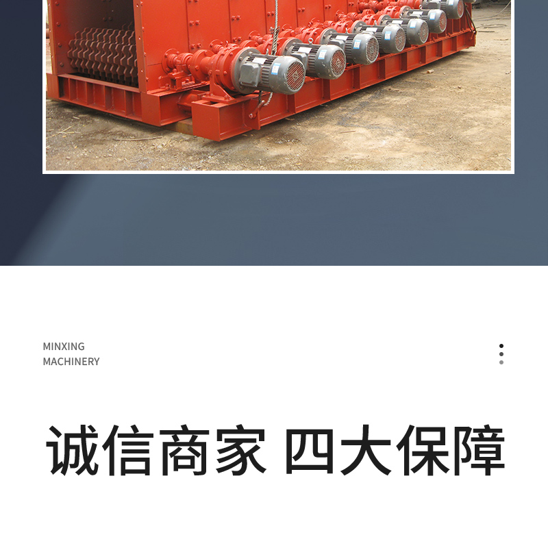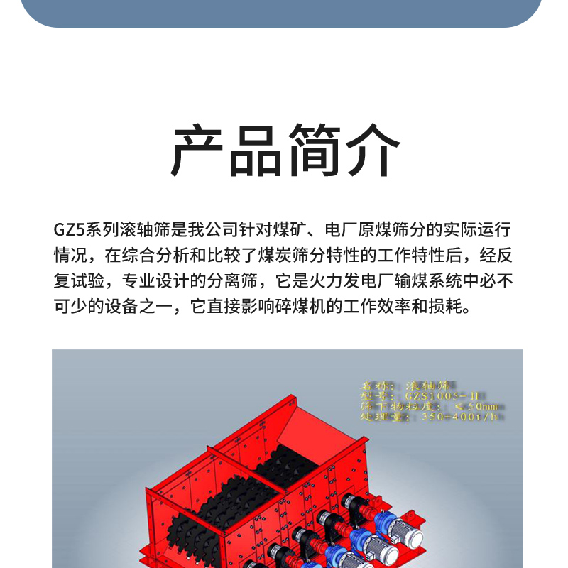 滚轴筛的筛面由很多根平行排列的、其上交错地装有筛盘的辊轴组成,滚轴通过链轮或齿轮传动而旋转,其转动方向与物料流动方向相同